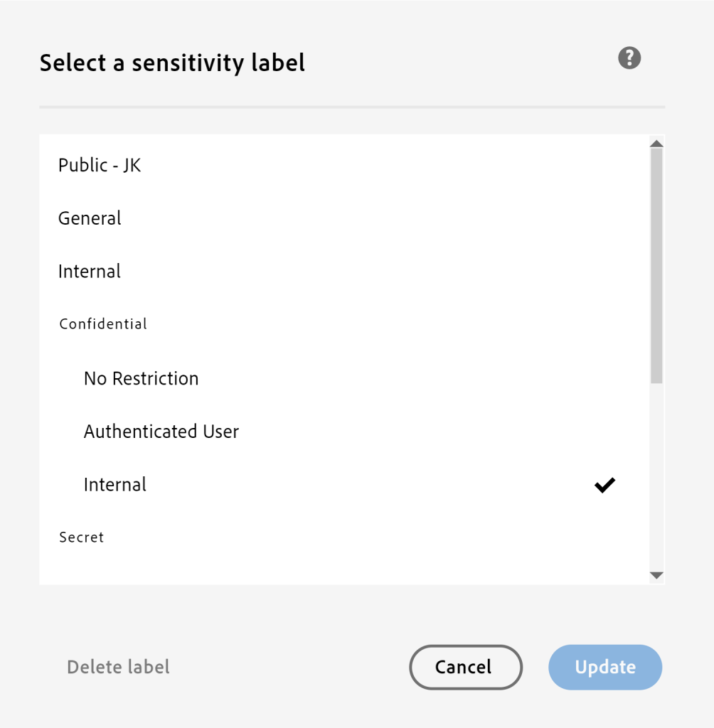 Internal ist die „alte“ Kennzeichnung aus Word. Confidential – Internal oder Secret – no Copilot sind durch Adobe und werden angepasst.