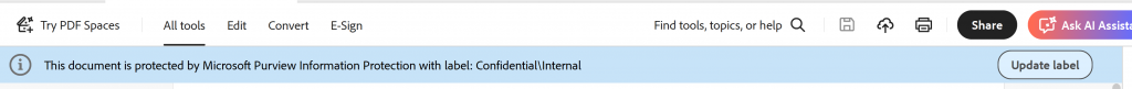 Die Labels von Microsoft Purview werden auch in Adobe angezeigt, sofern das MPIP Feature in Adobe aktiviert ist.